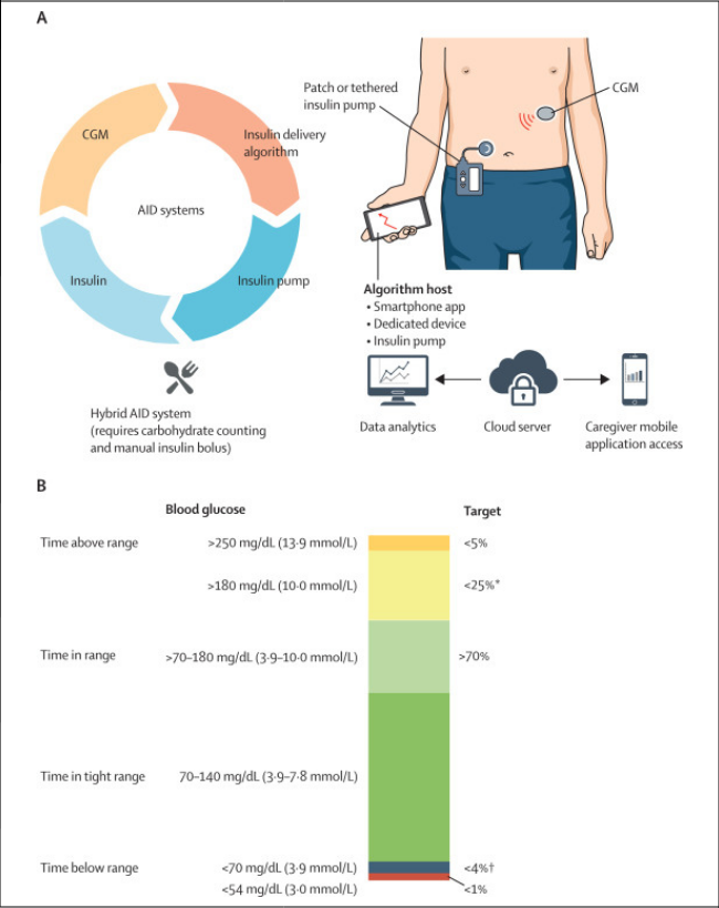 Figura 1: Sistemas AID y objetivos glucémicos basados en la monitorización continua de glucosa